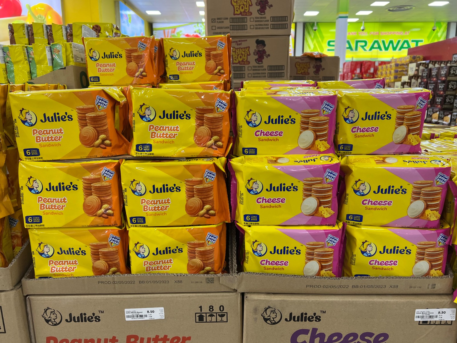 Julies signature product that promises a unique Julie’s experience. Rich and fragrant peanut butter cream paired with crispy, golden baked and lightly salted round crackers making this the perfect snack for all occasions. There is none other like Julie’s Peanut Butter Sandwich